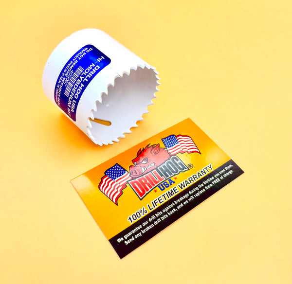 Drill Hog is proud to release the newest technology in Hole Saws. Drill Hog hole saws are made from HI-Molybdenum M7 steel. Molybdenum has a melting point of 4753° Fahrenheit. They are cryogenically treated during the curing process. That creates a hole saw that will last 60% longer than standard hole saws! These hole saws will cut all types of wood and metal. Makes holes for conduit fast and easy. Produces a clean hole! Proudly made in the USA.