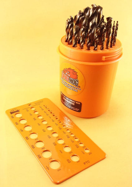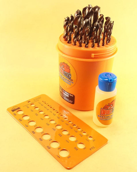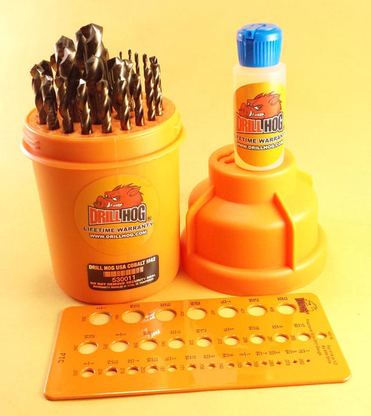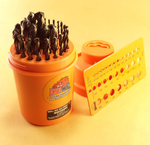 Drill Hog® 29 Pc Super Premium Cobalt M42+ Drill Bit Set in Orange Round Case w/ Belt Clip