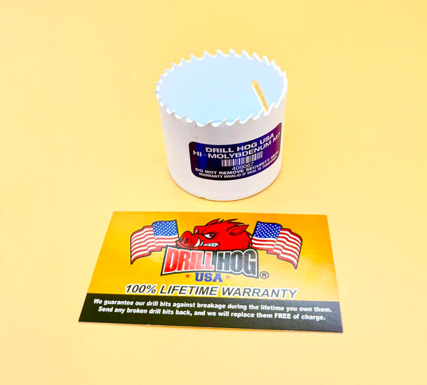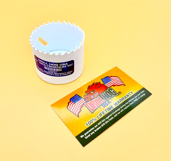 Drill Hog is proud to release the newest technology in Hole Saws. Drill Hog hole saws are made from HI-Molybdenum M7 steel. Molybdenum has a melting point of 4753° Fahrenheit. They are cryogenically treated during the curing process. That creates a hole saw that will last 60% longer than standard hole saws! These hole saws will cut all types of wood and metal. Makes holes for conduit fast and easy. Produces a clean hole! Proudly made in the USA.