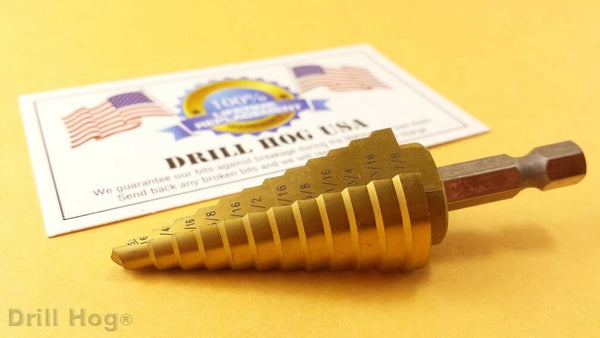 Drill Hog 3/16" to 7/8" Step Drill Bit Titanium Ti-22 Hex Shank