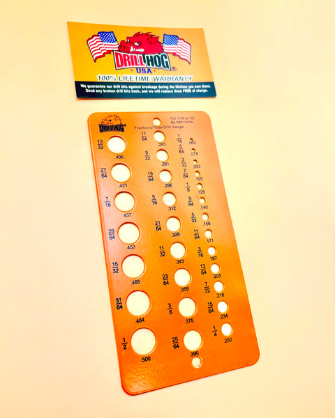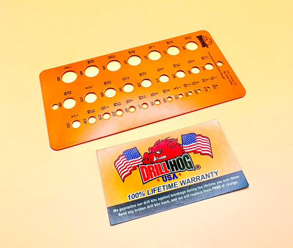Drill Hog is proud to release our newest drill gauge. This gauge is used to check drill bit sizes. Made from heavy gauge steel!